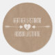 An outdoors evening wedding sticker featuring an illustration of a heart between two arrows. Background is brown paper inspired. Personalise the text with your names.
