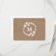 A wedding rsvp featuring an illustration of a white floral wreath. Background is brown paper inspired. Personalise with your initial. Look for matching wedding invitations and more at Jill's Paperie.
