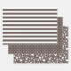 Three patterns in coffee brown and white: basic stripes, polka dots and random spots.