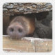 Brown Pig Poking Nose through Rustic Fence Square Sticker