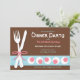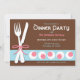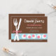 Elegant and sweet dinner party invitations with a white fork & knife on a pink, blue, and brown themed design.