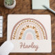 Brown Pink Boho Rainbow Custom Name Monogram Mouse Mat