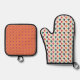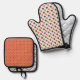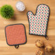 BROWN PINK ORANGE TURQUOISE GEOMETRIC PATTERN OVEN MITT & POT HOLDER SET