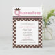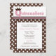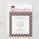 Bold and stylish Quinceañera invitations with white polka dots over brown on both sides, and a crown over the pink coloured "Q" in "Quinceañera".