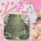 Personalize this enchanting Princess and the Frog Quinceanera / Sweet 16 birthday paper plates easily and quickly. Simply click the Edit Using Design Tools button to further edit the text, change font styles and font colors. Featuring a brown girl dressed in a sage green dress, a frog prince, beautiful trailing white floral and an enchanted forest and pond background. The princess, crown, little butterflies and frog are movable, resizable, multipliable and removable. Customize it to suit your occasion. For a seamless and coordinated look, explore our range of matching items available in-store. (c) Somerset Fine Paperie.