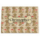A cute brown puppy dog pattern. One with his little tongue sticking out. A red dog food bowl with a dog bone in it and paw prints shaped like hearts in the background in a light beige. A big dog bone ready to personalise and add any dog name! Fully customisable! Great for Dog Groomers, Veterinarian, Dog Walkers, Dog Lovers and Dog Owners.