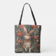 Brown Rabbit Red Tulips William Morris Inspired Tote Bag