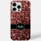Brown red faux glitter sparkles Monogram iPhone 15 Case. Personalise Sparkly iPhone case with your initial and name. Beautiful girly glamourous shiny glitters sparkles. Photo of sparkles not actual glitter!