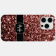 Brown red faux glitter sparkles Monogram Case-Mate iPhone Case