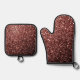 Brown red sparkles faux glitter bling Oven Mitt & Pot Holder Set. Beautiful girly glamourous shiny glitters sparkles. Photo of sparkles, not real glitter! Faux sparkles! No messy glitter to the touch!