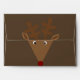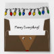 A cute, fun holiday envelope in brown with a cute reindeer design on the back, a lighter brown banner area on front for the recipient's name and address, and inside the flap is a sting of coloured tree lights and text that reads "Merry Everything" that is customisable!