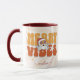 Colourful retro groovy typography customisable script coffee mug. The design features the text "Merry Vibes" in orange, beige and brown groovy typography with kawai-themed elements and stars. The name can be easily customised. Makes for the best personalised gift for yourself, your friends, family members and even neighbours. We have 45+ more Christmas designs in retro, watercolor and funny typography-based themes in our collection that you will definitely love. Merry Christmas!