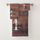 Brown Rustic Monogram Script Farmhouse Name Bath Towel Set