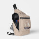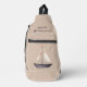 Simple design in beige. A sailboat adorns the front pocket and above it, your name or the name of your boat in elegant and brown. On the side, your position or title. Texts and image are customizable to your needs.
