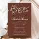 Elegant floral bridal shower invitations featuring white sketched flowers and leaves near the top of the invite with a brown background. Personalise the botanical bridal shower invitation with the bride-to-be's name and shower details below in classic white lettering. Designed to coordinate with our Sketched Floral wedding collection.