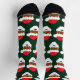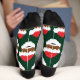 A Black Santa Christmas socks featuring Santa Claus with a brown skin tone and wearing a red hat on a green background. Add a pair or two to your cart, get them home, then enjoy them oasis part of your holiday!