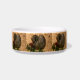 This is a heavy, durable bowl decorated with Tibbies of many colors, the perfect size for hungry/thirsty Tibs. The design is interesting and printing clear.