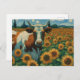 Brown Spotted Cow in Faux Van Gogh Sunflower Field Postcard