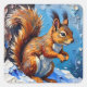 An adorable brown squirrel sheltering by a tree in during a snowy winter.