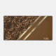 Brown Stitch Faux Leather & Leopard - Monogram Desk Mat