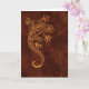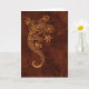 This tribal gecko design is decorated with intricate lines and swirls. The lizards feet are spread out in all directions making is look like it is climbing on the surface of the pattern. It's tail hangs down below the body while it's head is turned slightly towards the viewer in a curious pose. Rough textures and natural brown colours give the pattern the look of being carved out of stone. This beautiful design is a stylish representation of this cute little lizard.