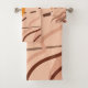 An orange brown tan beige abstract art pattern design bath towel set. Set includes bath towel, hand towel and wash cloth. Can also be purchased separately.