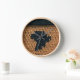Image printed on wall clock is from a photo of an original tapestry crochet creation designed handmade and Copyright © by published designer Delores Chamblin. The picture of the unique handcrafted black and brown Africa map design is reproduced on the clock.