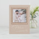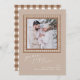 Brown Tan Peace Joy Love Christmas Holiday Photo Image Card. Calligraphy text. All customisable. Gingham check.