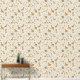 Perfect for a baby nursery or toddler's bedroom, this wallpaper has a variety of cute giraffes, an elephant and a lions in a repeating pattern, along with boho style leaves. Predominant colours are gold brown and tan, placed on a creamy tan background.