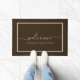 Elegant welcome doormat with a taupe script on a brown background. Personalise with your family name or text.