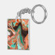 Brown, Teal, Orange Marble Fluid Art Key Ring
