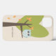 Custom name iPhone 6 covers, by red_dress, featuring a Fall scene illustration, with brown tree trunk, green tree, orange leaves, cute owl sitting on brown tree branch and falling leaves.