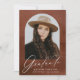Announce your graduate’s milestone with this elegant graduation announcement featuring their photo inside a sophisticated arch frame set against a warm brown watercolor background. "Graduate" is beautifully scripted in modern white calligraphy, with the graduate’s name, school, and graduation year displayed below for a personalised touch. The reverse side showcases a stylish grid layout with space for six additional photos, allowing you to share more cherished memories. Perfect for high school and college graduations, this customisable photo announcement is a timeless keepsake.