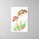a traditional watercolor artwork featuring big brown coloured mushrooms growing from the forest ground in watercolors as a decorative canvas print.