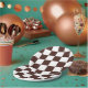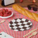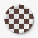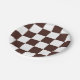 Paper plate with a brown and white chequered pattern. Perfect for any gathering.