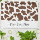 Brown White Cow Pattern Personalised Tea Towel