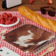 The cowhide leather details are simulated in the artwork. No actual cowhide or leather will be used in the making of this product.
