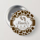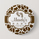 Brown, White Giraffe Animal Print Baby Shower 7.5 Cm Round Badge