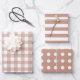 Brown White Matching Patterns Gingham Dots Stripe Wrapping Paper Sheet