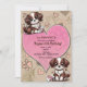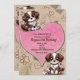 Brown & White Puppy Dog Pink Heart Birthday Party Invitation