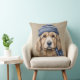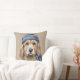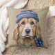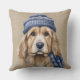 BROWN & WHITE SHAGGY DOG WITH BLUE HAT CUSHION