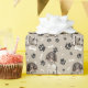 An image of a cute brown and white Springer Spaniel dog is the feature in the pattern on this all occasion gift wrapping paper. The dog sits amid a pattern of black paw prints and white bones, and is repeated on a light brown background.