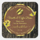 Make a lasting impression with this elegant and modern product label design featuring a brown coloured wood grain and natural tree bark with a pretty golden frame and cute butterflies.