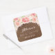 Brown Wood Pink Watercolor Flowers Bridal Shower Square Sticker