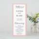 The main text of the program is presented in a simple black block font that is easy to read, while the words "Welcome," "Ceremony," and "Wedding Party" are displayed in a pretty black modern script font, adding an extra touch of elegance and style. The couple's names are featured in bold black letters with letter spacing that makes them stand out, ensuring that their names are front and centre.
