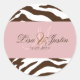 Brown zebra print monogram wedding stickers (envelope sealers), shades of pink accent. Great for everyday use. Fully customisable. Fonts and back ground colours can be easily changed. Copyright © 2009 PixDezines.com and PixDezines on zazzle.com