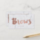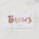 A modern, stylish brow business card and appointment card with modern hand lettering style brush typography in faux rose gold foil on a trendy and elegant white marble background.