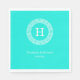 Brt Aqua Wht Greek Key Rnd Frame Initial Monogram Napkin