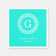 Brt Aqua Wht Greek Key Rnd Frame Initial Monogram Napkin