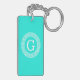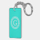 Bright Aqua and White Greek Key Round Framed Initial Monogram